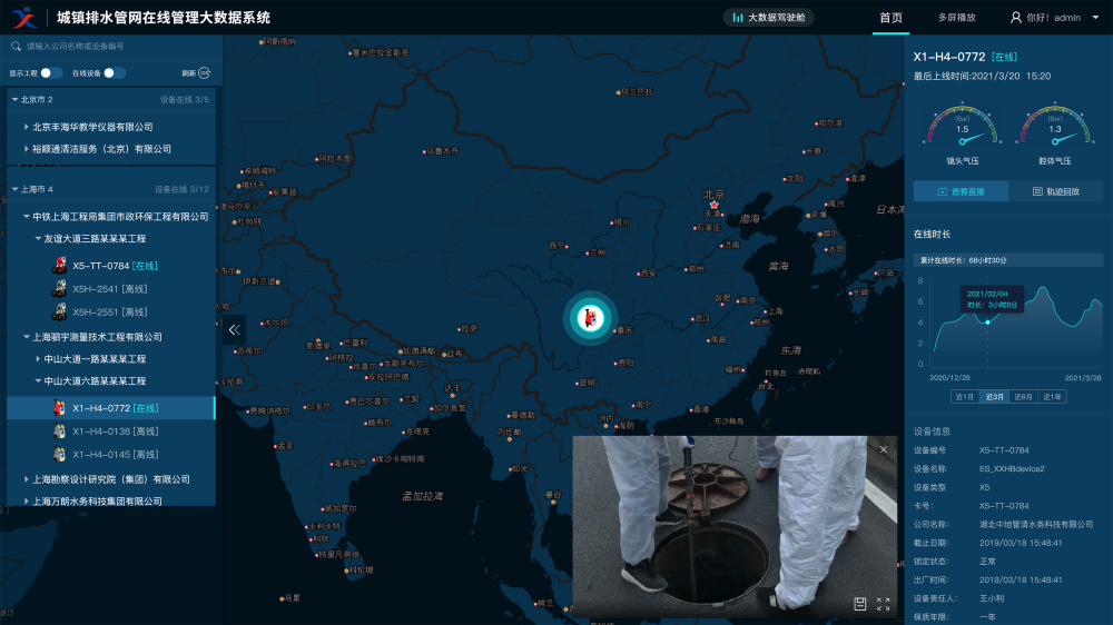 建立完善的管网数据,从管网查、检、修、养、管多个维度,对管网进行全生命周期管理。基于管网GIS分布结合智能检测设备,对管网流量分析、流向分析、溯源分析、对异常情况报警:基于智能设备和互联网技术,完成管网检查、缺陷统计分析、管网修复、管网清淤、巡检运维等多环节对管网施工工程进行精细化管控,做到一网融合共治共享。